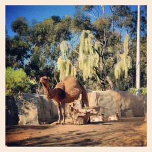 Above, a peek at a few of the San Diego Zoo’s fabulous residents: flamingos, a pygmy hippopotamus and Arabian camels. Believe it or not, that hippopotamus sculpture above is made completely out of sand!