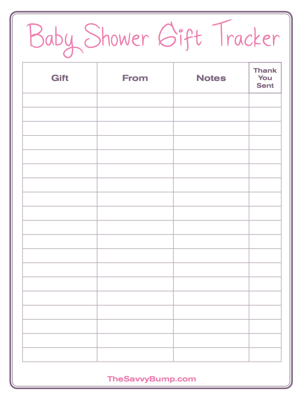 2. Baby Shower Gift Tracker :The godmother should hopefully be present and on hand to help out during the present opening portion of the party. Instead of using the back of an envelope (ahem – like my family did), consider printing out several of these Baby Shower Gift Tracker sheets.