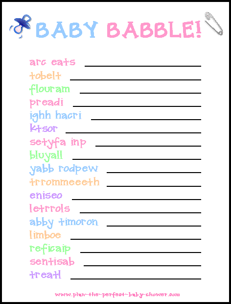 4. Baby Shower Word Scramble :Somewhere between the pasta and the salad, pass this next game around. Baby Babble is a fun, timed game where the first two or three winners should be able to take home a prize.