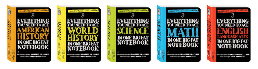One way I’ve found great success with in trying to get Natalie to put in that hard work and get those good grades is with the BIG FAT NOTEBOOK series. This incredible book series is built on a simple and irresistible conceit—borrowing the notes from the smartest kid in class. There are five books in all, and each is the only book you need for each main subject taught in middle school: Math, Science, American History, English Language Arts, and World History. Inside the reader will find every subject’s key concepts, easily digested and summarized: Critical ideas highlighted in neon colors. Definitions explained. Doodles that illuminate tricky concepts in marker. Mnemonics for memorable shortcuts. And quizzes to recap it all. They are super amazing and both Natalie and I really love them. I wrote a bit more about each book right here.