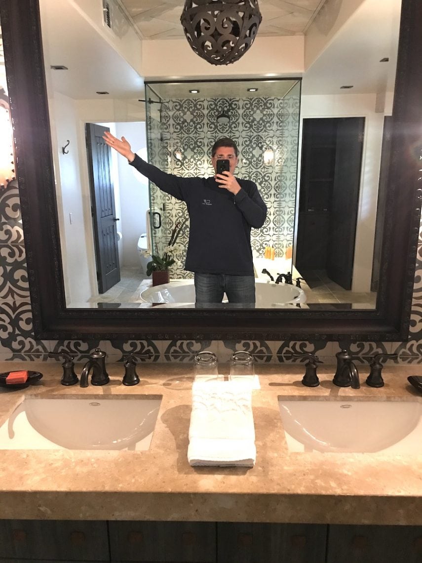 The casitas were gorgeous. They are basically apartments, with an amazing bathroom (hello steam shower), wonderfully sized sleeping and living spaces, and perfectly placed outdoor space (did someone say hot tub). The design and decor was spot on, too. Ideal feels for such an impressive resort and setting. The place felt like home, the home of a really nice friend with impeccable design taste. LOL! I want my house to look like this casita. Like, no joke. I wonder why Bill has his fingers in his ears again. Huh, odd.