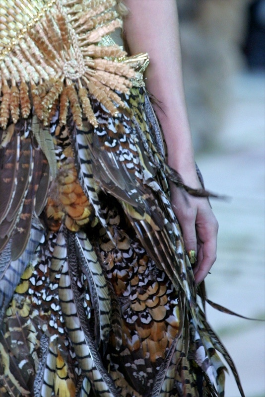 I am a HUGE fan of Alexander McQueen so I was super excited to see the house’s first collection, since his passing. The new designer is Sarah Burton and she has the heavy responsibility of creating clothing that resonates with the McQueen woman, while presenting new and groundbreaking designs, like McQueen himself did. If she actually succeeded is up to you to decide.