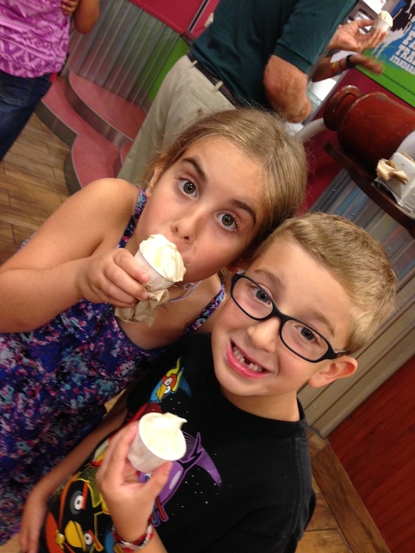 At the end of the tour, we all got a cone of our own. Can you please take a look at the scoops on this puppy. Are they kidding me?! I almost DIED when the kids were handed these monsters.