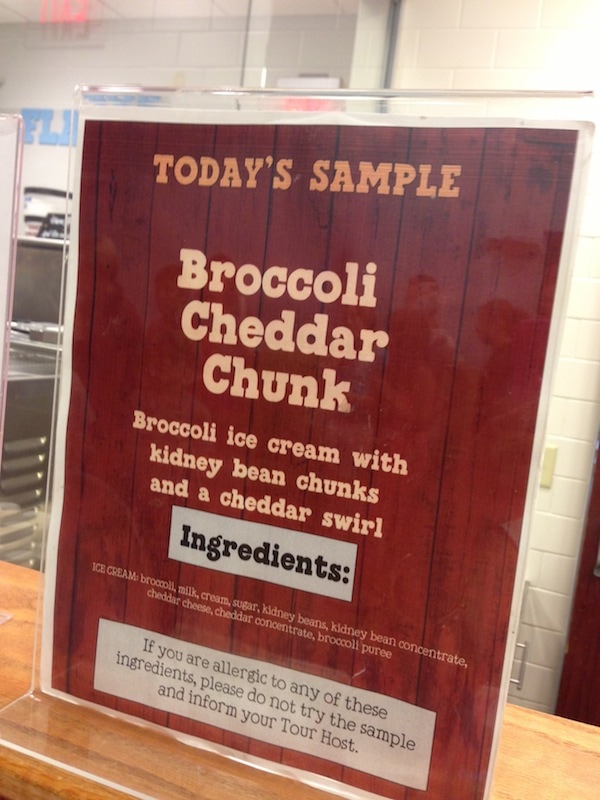 Well… that is AFTER they found out that “Today’s Special” actually WASN’T Broccoli Cheddar Chunk . LOVED this sign. Some people actually believed that this was what we were going to taste. I guess Ben and Jerry’s really is known for mixing a variety of flavors together. But broccoli?? Come on people!