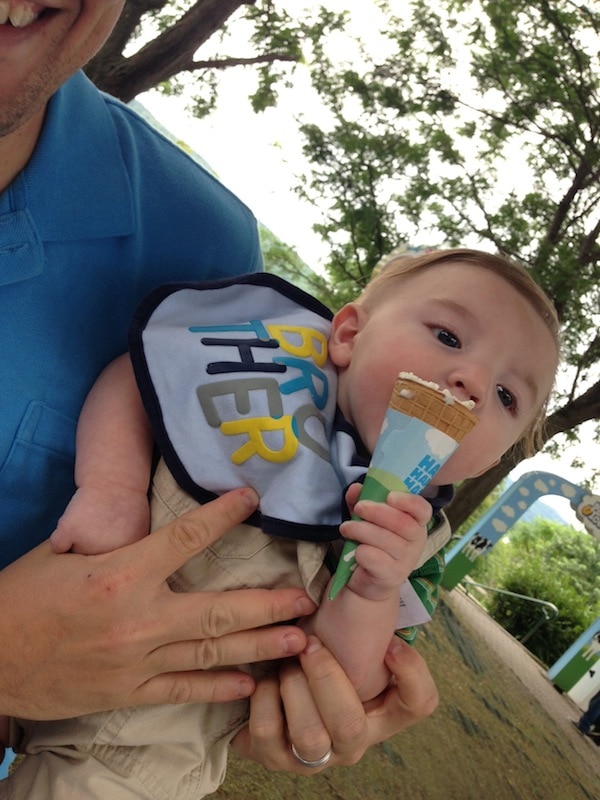 We (fake) gave Caleb a taste. It was actually pretty funny. We put the cone in his hand and he went to shove it right into his mouth. Bill had to jump in and stop him.