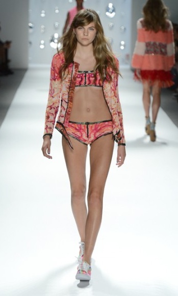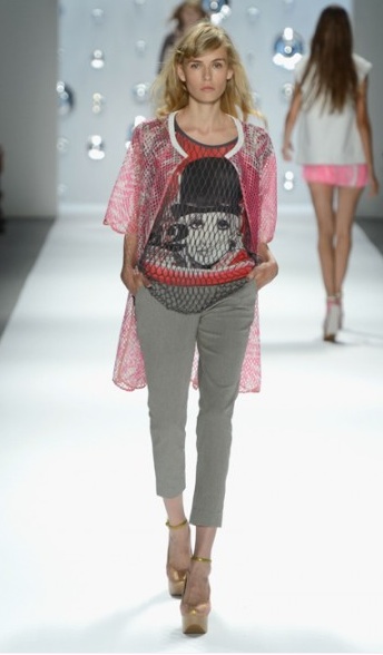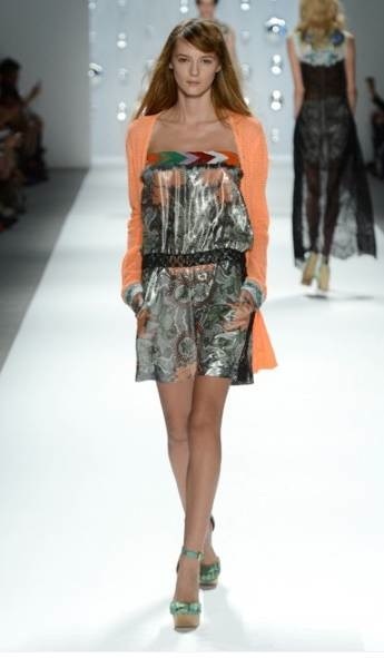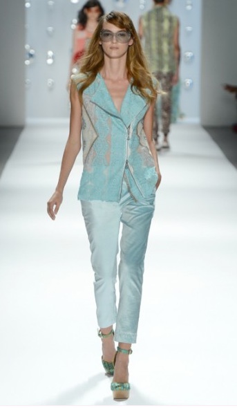The collection is fun and flirty in its hippie chic roots. Mesh tank tops and transparent fabrics accommodate the layered look, while the flow that strutted the runway exhibit flawless execution.