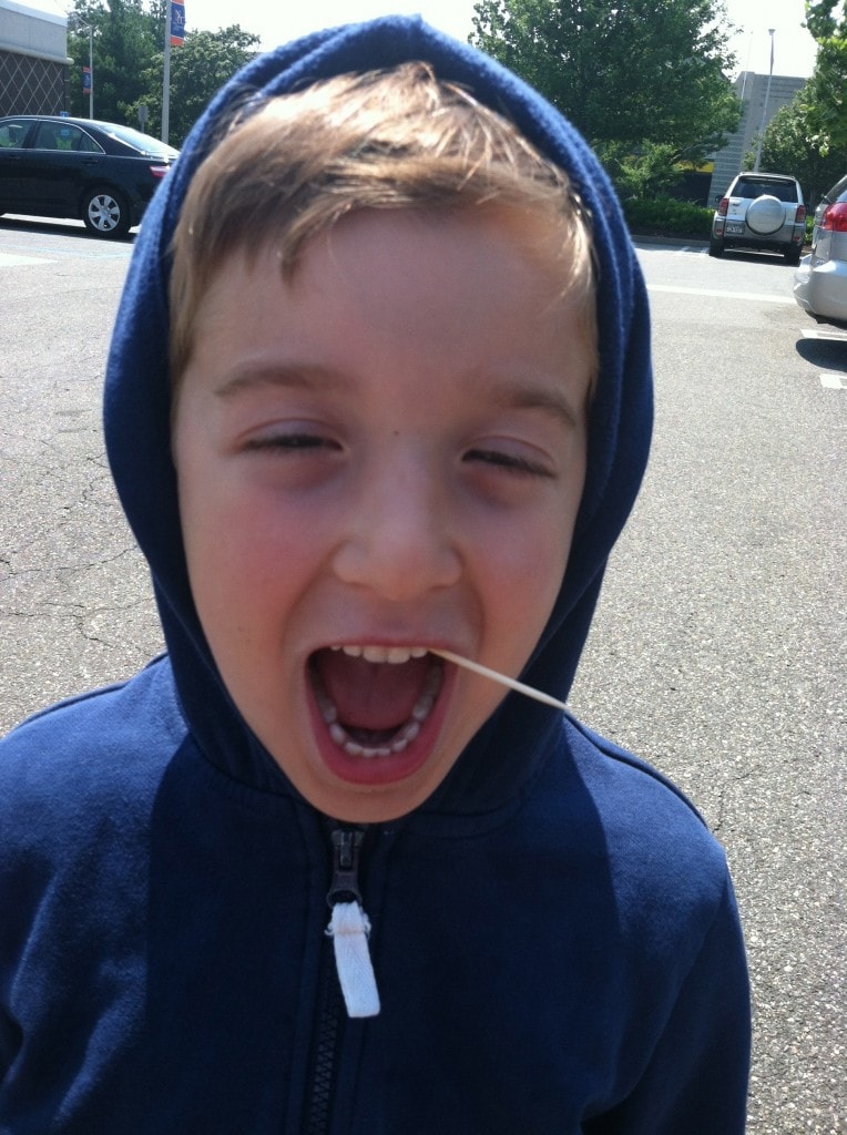Of course, Liam is just sucking the mint off of the toothpick. But whatever works!