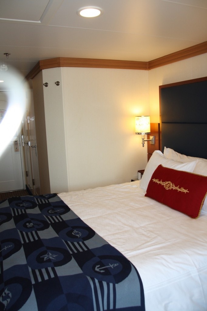 Anyway, my Disney Fantasy room is a nice size. There is a sitting area – which houses a couch and a desk – and a full tub in my room. Two things I did NOT expect to see. There are also plenty of outlets and WiFi – yippee! The bathroom is split up into two rooms – one with a tub/shower and sink and the other with a toilet and sink. With plenty of closet space and a plush bed to call my own, you better believe I’m a happy camper.
