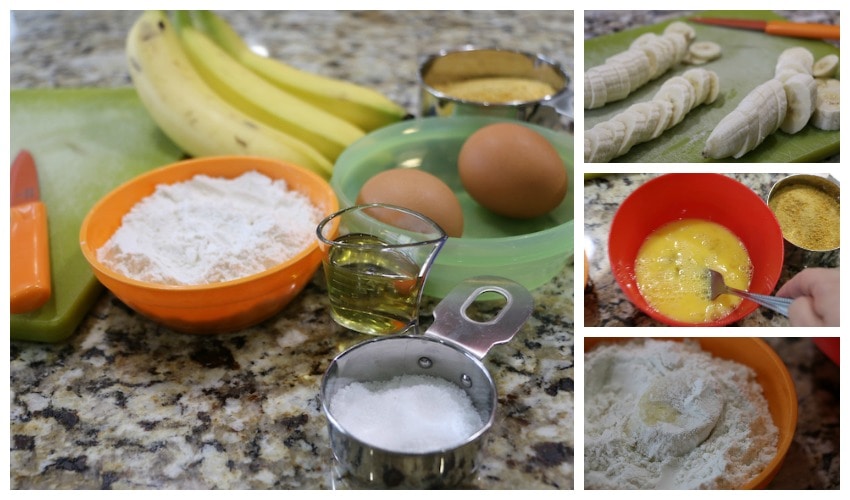 For this version, I put a bit more breading on it to see how it would be. It was great, but you can also put a very minimal amount and it would be even more “pure banana.” You can see the difference below. It’s up to you!!