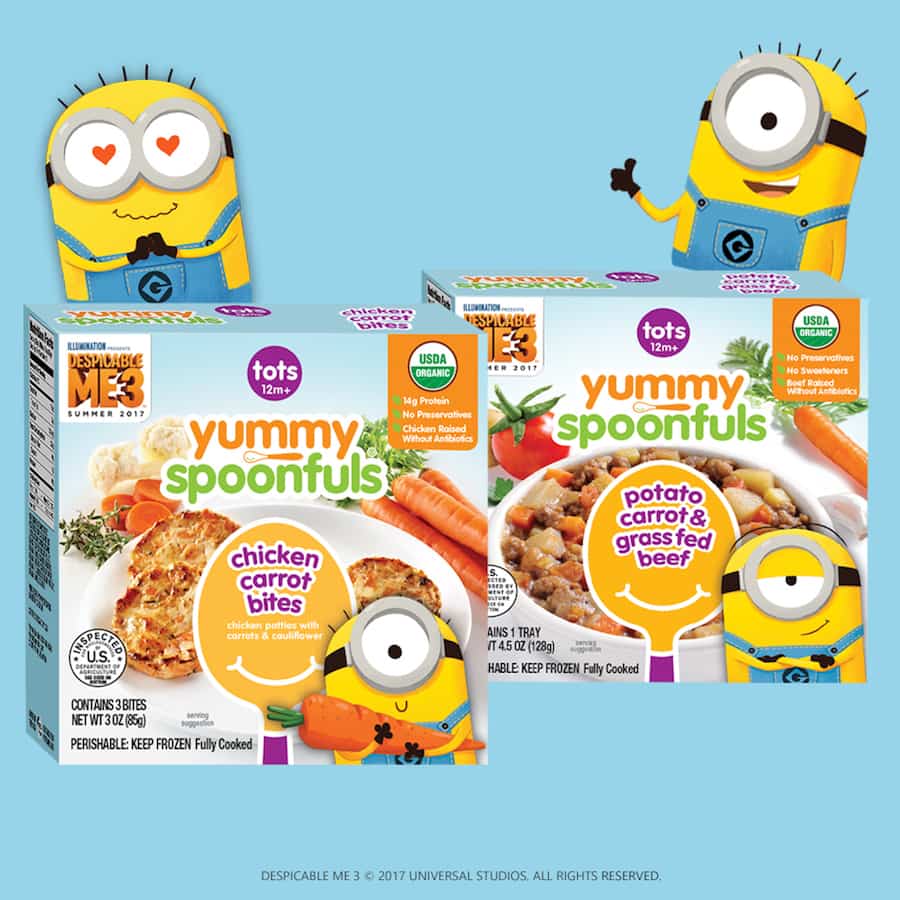 If that’s not enough Minion love, I have some more for you!!! Yummy Spoonfuls, in the frozen section at Target, are delicious and great for your kids. It’s some good snacking that’s 100% organic, non-GMO, preservative-free, additive-free and cooked on low heat (just like homemade) to keep all the nutrients locked in. Plus, there are Minions all over the box! Get a coupon at YummySpoonfuls.com!!