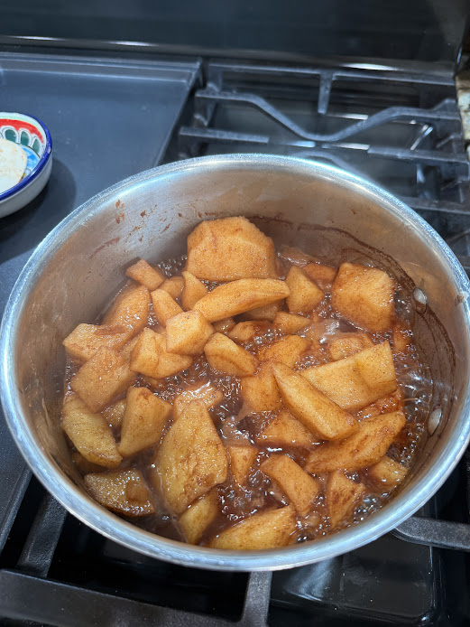 - Add the apples, water, sugar (if using), and cinnamon to a medium-sized pot.