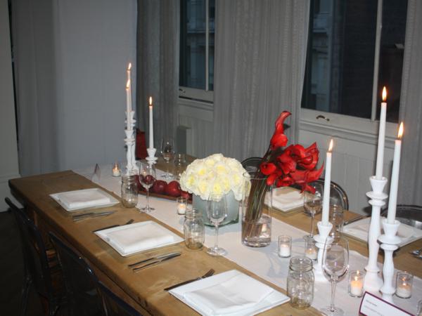 I noticed the simplicity in Katie Lee's home decor which made a warm & inviting dinner party. She celebrated what she had in her apartment. Lots of beautiful copper pots on the shelves, gorgeous tomatoes on a plate, and white table settings.