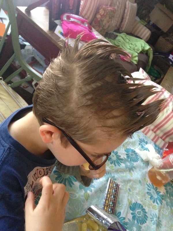 Take a look at how cute, eh…cool and awesome…my little man Liam looks with his fauxhawk! He was so excited…