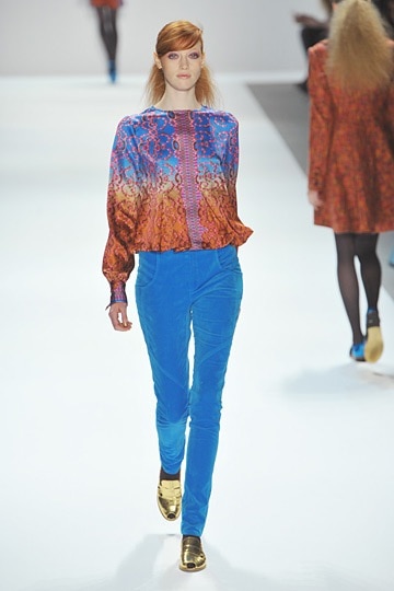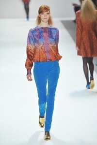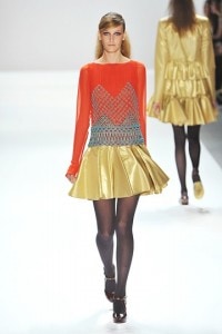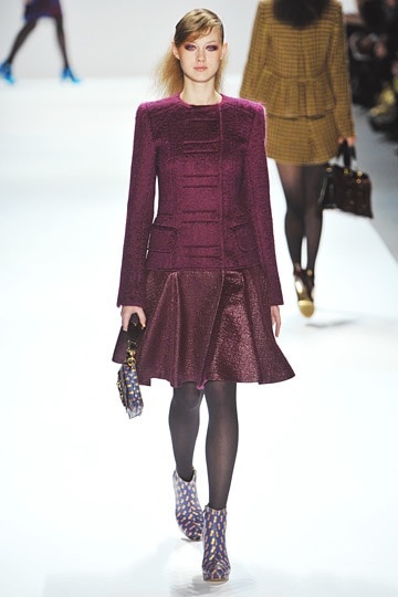 The collection also included gold metallics which paired beautifully with the deep burgundies and blues that made up the rest of the collection. Overall, Nanette Lepore‘s Fall/Winter 2012 colletion was a modern update on its dandyism inspiration and the effect was a very wearable collection that is sure to turn heads and inspire fashion envy in those around you.