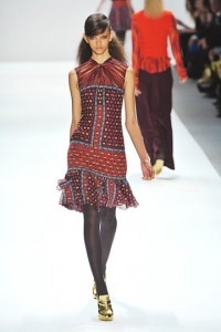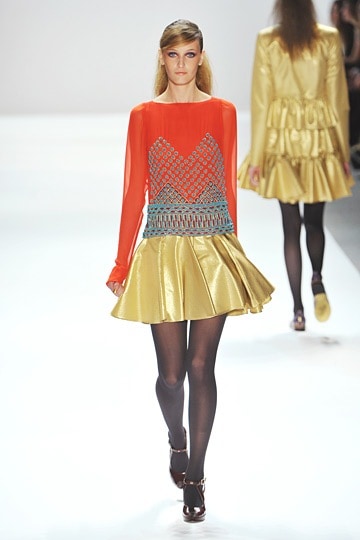 Nanette Lepore is one of my personal favorite designers and if I had a magic fashion fairy, hers is the collection that I would wish to appear in my closet come fall. Inspired by her love of all things vintage and “Tarot reading with Oscar Wilde” Nanette Lepore‘s collection showcased rich colors and gorgeous prints to evoke the perfect vintage bohemian vibe.