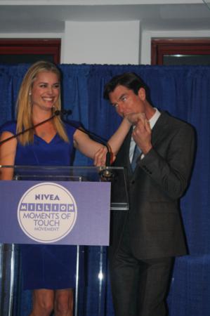 NIVEA also chose one couple that they think do a lot of touching and really work at that in their relationship. It was Rebecca Romijn-O’Connell and Jerry O’Connell!! I almost fell out of my chair when they walked out. They talked a bit about juggling busy lives but still finding the time to touch each other and connect.