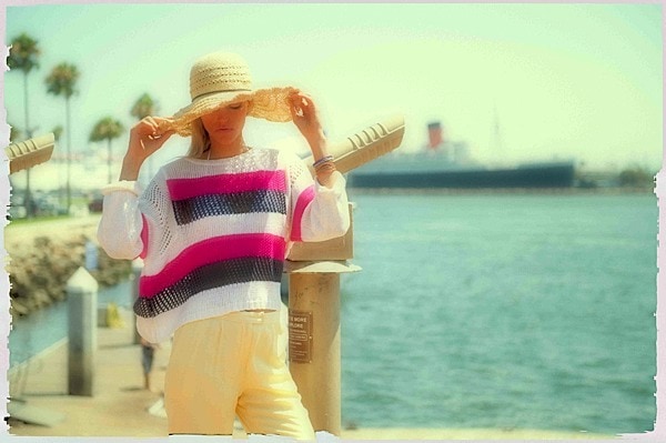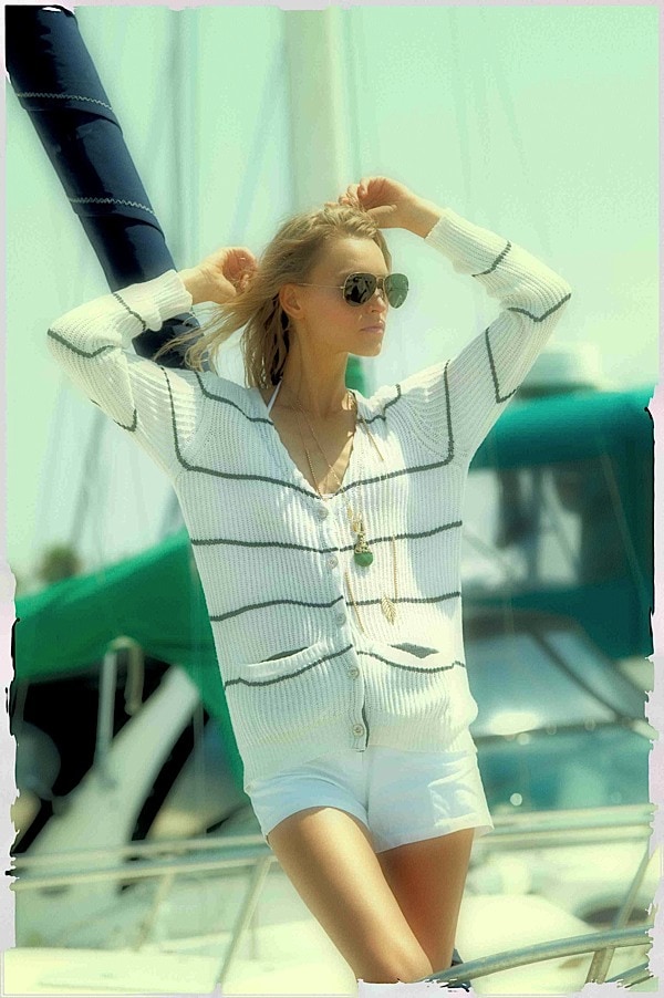 a+ro Spring 2012 puts a twist on traditional knitwear through its unexpected use of nautical motifs, mixed prints, and pops of neon brights. In addition to the brand`s signature sweaters, the collection features an assortment of slouchy knit tees, print knit shorts, and crochet cover-ups, resulting in a perfect Spring wardrobe.