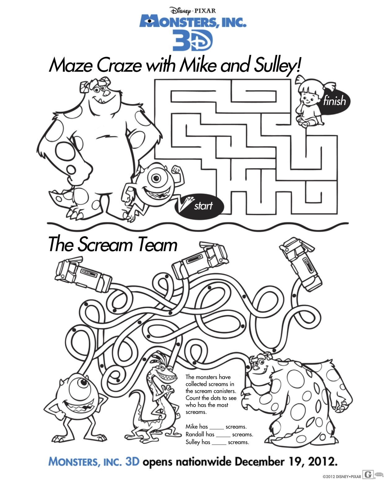 Are you looking for Monsters Inc 3D coloring pages? I have 4 to share!! Click on the thumbnails below to open up the image. You will then have to click on the image AGAIN for it to expand to the full size. Right click to print.