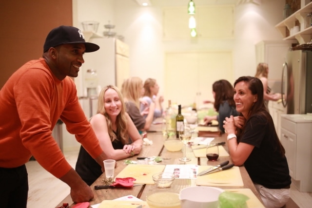 The night was a delight on many levels. For starters, it is rare for me to cook a meal and have it come out well, so it felt nice to have the swordfish taste so delicious even if my hand was held the whole way through. (To try your own hand at this recipe, go here to Plated‘s blog The Dish and follow the steps in the video. You can also find lots of their other awesome recipes there.) An ancillary and also unexpected benefit of the event was that I ran into and reconnected with a colleague from my former life as a paralegal. She and her friend were seated across from me and we bonded as we fussed over the recipes. That’s all of us chatting and drinking in the picture below: