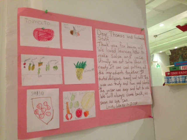 As you can see from this adorable thank you card from a class that attended a cooking lesson at Freshmade NYC, the kitchen leaves a mark on its students and guests that does not soon wear off: