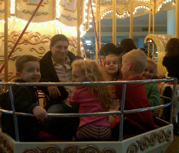 Yesterday, the kids were DYING to go do something. There’s only so many times you can throw them in a snow pile. We met up with a friend at the mall and let them go for a ride on the carousel. Bill went on with them to make sure everyone was ok. My friend and I sat back and chatted while the group spun themselves silly. I kept thinking what a good egg Bill was. 😉