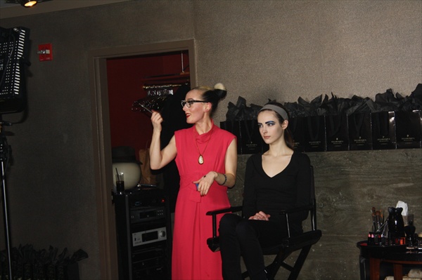 Alex Box is a character. With bold red lips, smart spectacles and a rip of blonde through her black hair pulled back in a severe bun, she chatted about her experiences as a makeup artist, while dropping tips on how to make your makeup better. Unapologetically high maintenance, she possesses that eccentricity that grabs your attention. She applied makeup to a model’s face while everyone watched, mesmerized. She talked for over an hour and I never got bored. One of her gems: “Don’t be afraid to be a freak. The freaks shall inherit the earth.” Here are some of her tips: