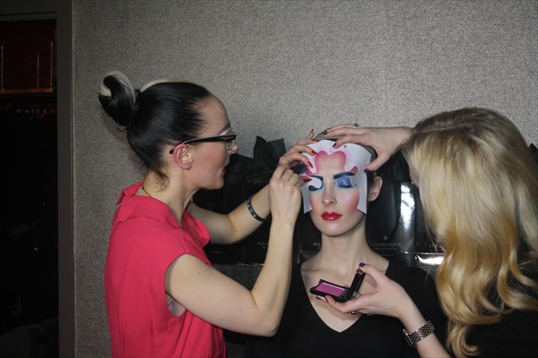 She transformed a model’s look from day to extreme with paper stencils and blush. The result was jaw-drop worthy.