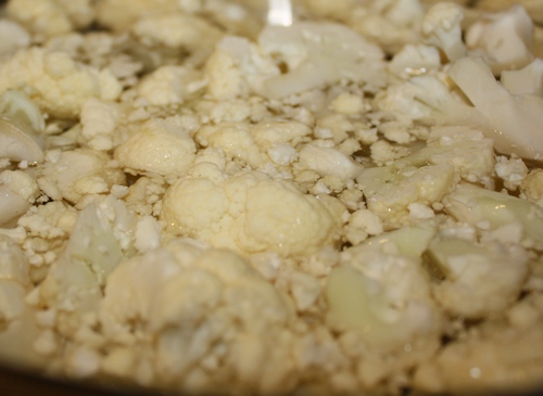I also want to point out that my local market sells cauliflower pre-chopped. So, I bought it like that. Hey! If I can save a few minutes of aggravation in the kitchen, I’m all for it.
