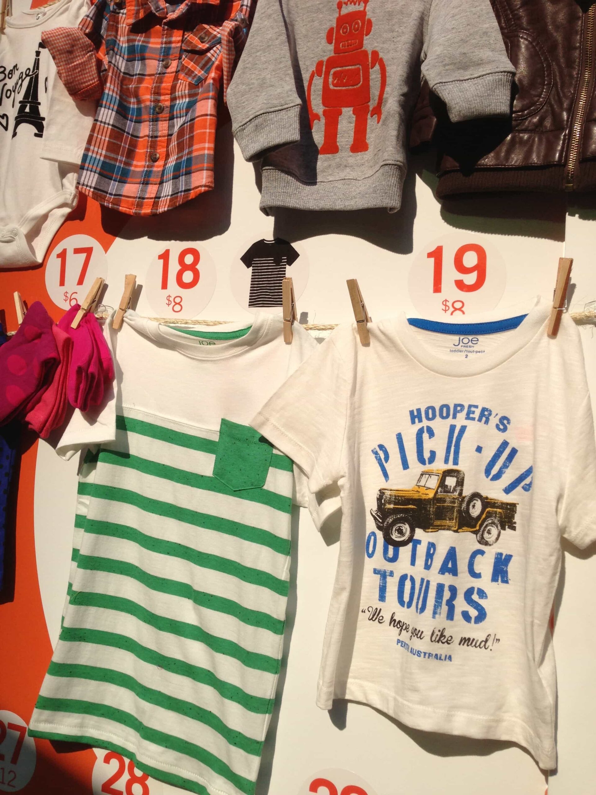 Here are some more pics and some links to the adorable clothes they had on display (many hanging from clothes lines):