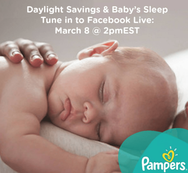 Tomorrow, March 8th, Audrey and I will be hosting a wonderful Facebook Live event with Pampers at 2 PM ET!!! We will be discussing a very important issue we all face as parents – managing your child’s sleep through Daylight Saving Time (DST)! If you can believe it, this weekend we all “spring ahead” which means we lose an hour of sleep. While that may not seem like a big deal, it really can be. Did you know DST can effect a child’s sleep patters for over a week after the time change? We’re going to talk tips to manage the weekend and maybe make your life a little bit better.