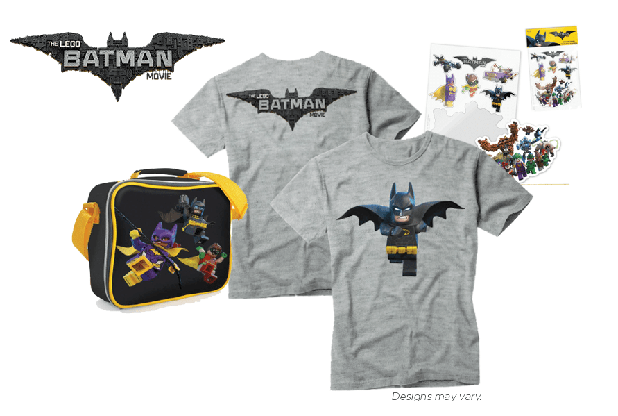 - LEGO BATMAN MOVIE T-Shirt, Lunch Bag and Stickers