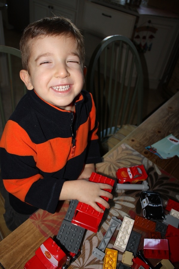 I’ve mentioned before how OBSESSED my son is with LEGO (again and again and again and again). Well, we have been building night and day now that we’ve added the LEGO DUPLO: Mack’s Road Trip to the group. You mean there was a toy that combined cars with Lego? I’m surprised Liam didn’t implode on impact.