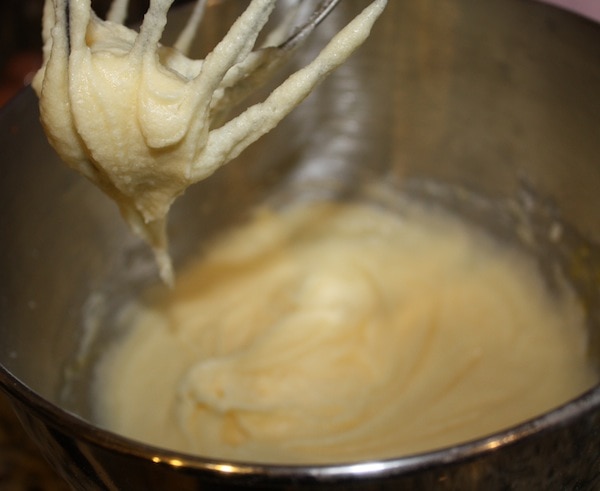In the large bowl combine the butter and the sugar. Using an electric mixer beat the butter and sugar until light and fluffy, about 3 minutes.