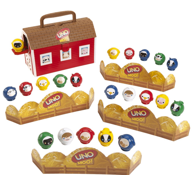 Are you looking for a game your preschooler will enjoy? UNO MOO! is easy enough to understand for everyone. You have to either match animal type or color. The first person to get all their animals back into the barn wins.