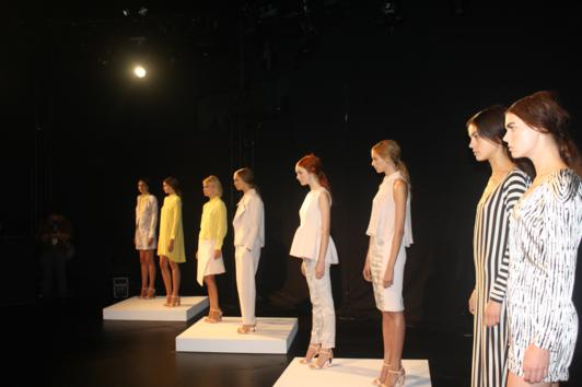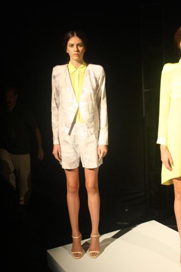 My first fashion presentation of the season was Kaelen. They presented a cohesive collection of clothing for the woman who is chic and stylish but doesn’t want to spend a ton of time getting dressed. The colors used were black, white, tan and yellow. This led to a mellow collection that didn’t compete for attention with color.