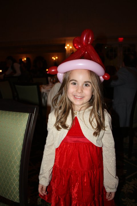 She is a doll....she wants to be just like mommy! And I love the pic w/the balloon hat - she's precious!