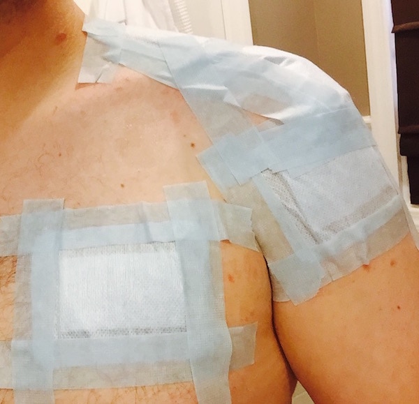 Even my husband Bill has some sensitive skin issues. He is very fair, but he also has some dry skin issues, too. While he’s not scared of bandages at all, he still experiences very irritated skin from traditional bandages. The blotchy, itchy, redness left behind is a real pain, literally. The Nexcare™ Sensitive Skin collection really came in handy for him recently, too. No kidding. He got a few cuts and scrapes on his chest, shoulder, and stomach…nothing major…he just needed to cover everything up to make sure it healed with no infection. Because of the location of the injuries, he also had to really tape around all the bandages to make sure they stayed in place all day and through the night. Thank goodness we had the Nexcare™ Sensitive Skin products! He wrapped, unwrapped and taped until his heart was content (he’s a bit OCD with some things) and didn’t have an issue. It was awesome to see, and it really did the trick. He kept saying that these bad boys are a must in the medicine cabinet for us from now on. For him to get so excited and be so committed to a first-aid product, it must be special!!