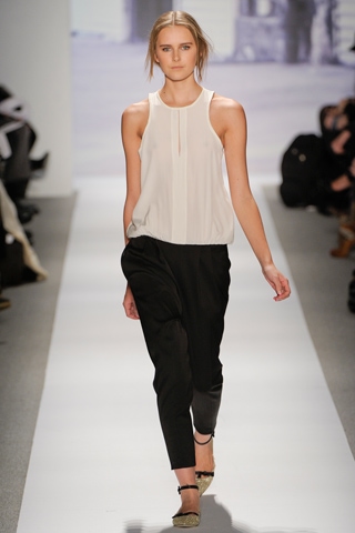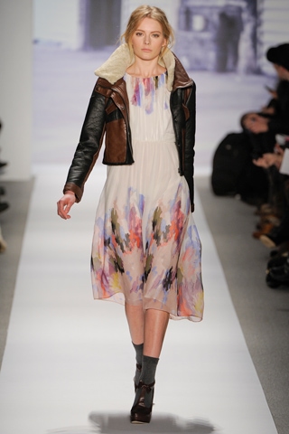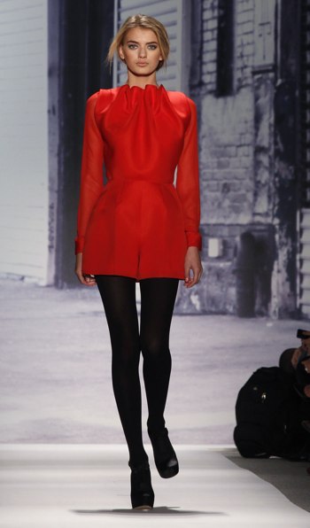 Tibi’s designer, Amy Smilovic, designs for the downtown girl who wants to look chic without looking overdone. Tibi’s Fall 2011 collection was a mix of beiges, grays and tans with shots of bright pink, red and gold in the form of accents and knit hats. The models wore minimal makeup with messy low ponytails. Some wore chunky heels while others were in flats.