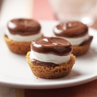 Cut marshmallows in half crosswise using Professional Shears dipped in cold water. Place one marshmallow half, cut-side down, into each cup. Return to oven 1-2 minutes or until marshmallows are just slightly softened.