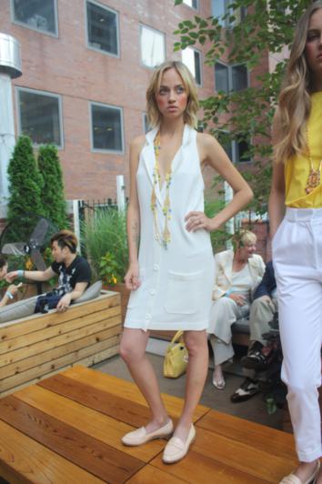 Dusty pink, yellow and eggshell were the colors that dominated the collection. The silhouettes were forgiving to the female form but complimentary in the manner of a well-dressed woman who knows what works for her body. While shorts were included in the collection, the hemlines were modest. Shifts stopped just above the knee, short enough to keep it young but chic.