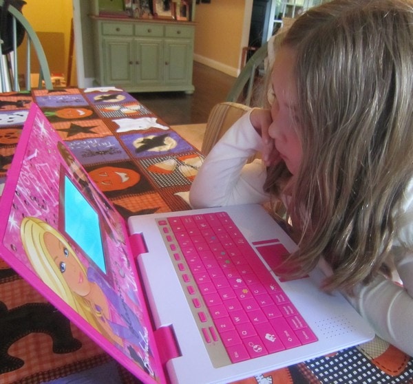 My daughter can not get over the fact that she has a laptop. I mean – she is ecstatic. SLEPT with it last night! A daughter just wants to be like her mom and this mom is attached to her laptop. So I completely understand why.