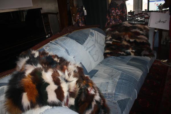 Every Fashion Week, I look forward to Robert Verdi’s Fashion Week Retreat. Its held in his Luxe Laboratory and usually features some really cool, new brands and trusted ones, as well. It provides a welcome respite for weary fashion show attendees to freshen up or just relax with good food. I paid a visit today and had so much fun! I LOVE his couch made of his old jeans!