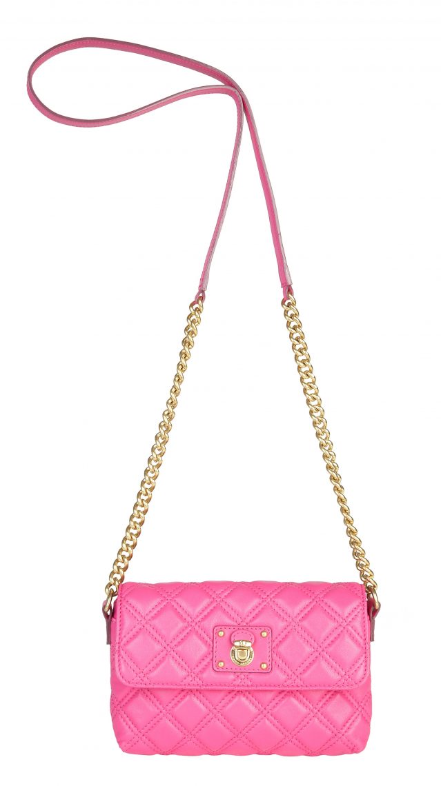 Day to Night “The Single” – The ultimate “go anywhere” bag, this style is worn cross body and looks great day or night. The gold chain strap and luxe quilted leather perfectly complement any outfit. Available in Black, Blush, Blue, Bright Pink and Purple and retails for $525 at Marc Jacobs Mercer 212.343.1490.