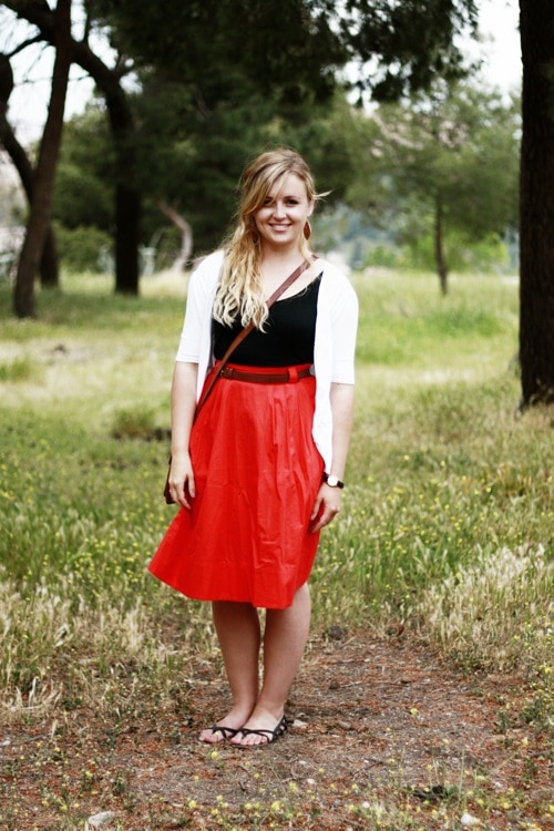 Tip: To make sure you find a flattering silhouette double check that the hem doesn’t fall mid-calf unless the skirt sits at the waist. If you see frustrated with your first one or two attempts to find a longer skirt, don’t give up! Keep trying new lengths to see which looks best on you and don’t be shy to ask for the help of a sales associate!