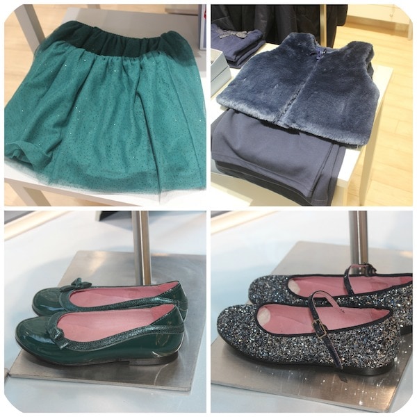 Glitter isn’t completely against the rules! This mini green skirt is sprinkled with the stuff for a fun party item that is easy to mix and match with darker or lighter colors. Glittery Mary Janes are also perfect for holiday parties.