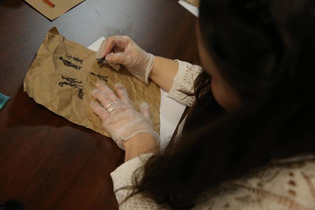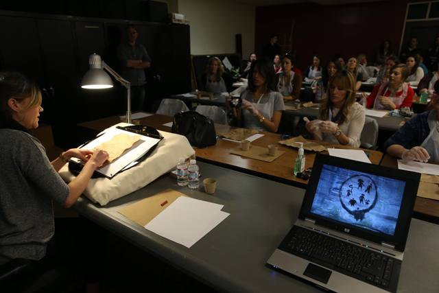In the workshop for the bloggers, Margaret and another Visual Development Artist Arthur Fong showed everyone how to create her own cave painting style family portrait.