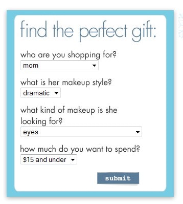 Can’t figure out what to get that special someone? Make use of their gift guide form. You plug in who it’s for, what makeup style they follow and how much you want to spend. Don’t you just love the magic of the internet?!