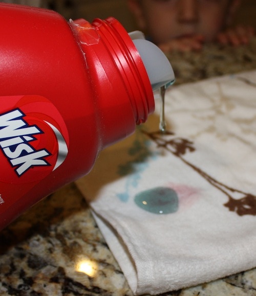 At this point, Bill and I had a little audience. You can see Liam in the background watching the action. I pre-treated the stained area with a little Wisk and let it sit for a few minutes.