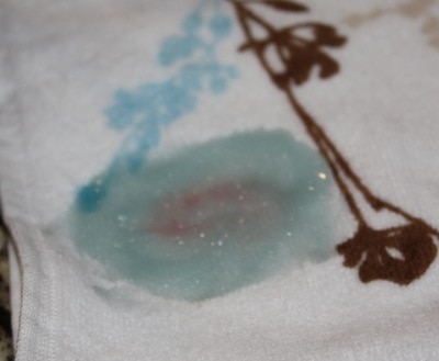 Wisk did it again! We’ve already combatted grass stains and Liam’s ketchup painting but today we are focusing on LIP GLOSS! Lip gloss represents oil stains which also include everything from peanut butter to salad dressings. I was asked to purposely stain a towel and test out the powers of Wisk.